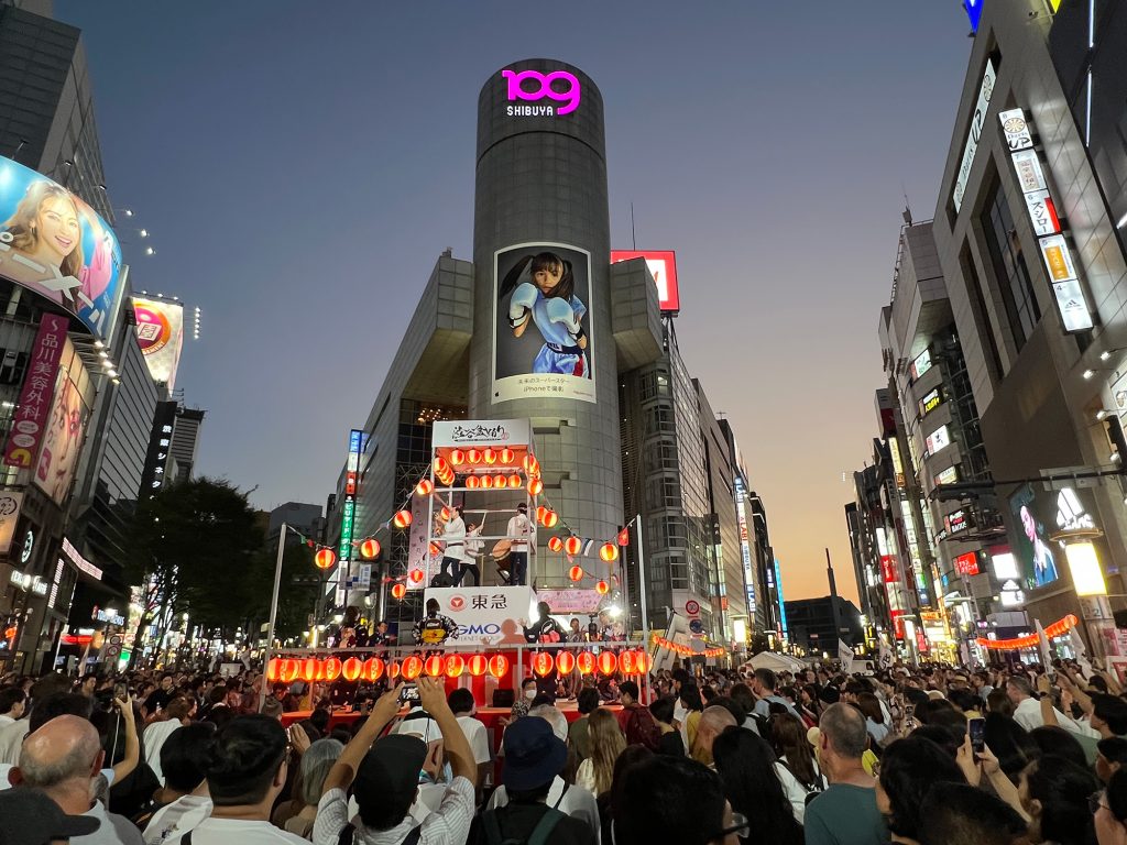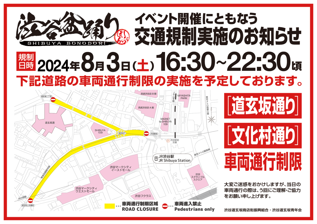 16時30分〜22時30分まで交通規制して18:00より第五回渋谷盆踊りを行います。